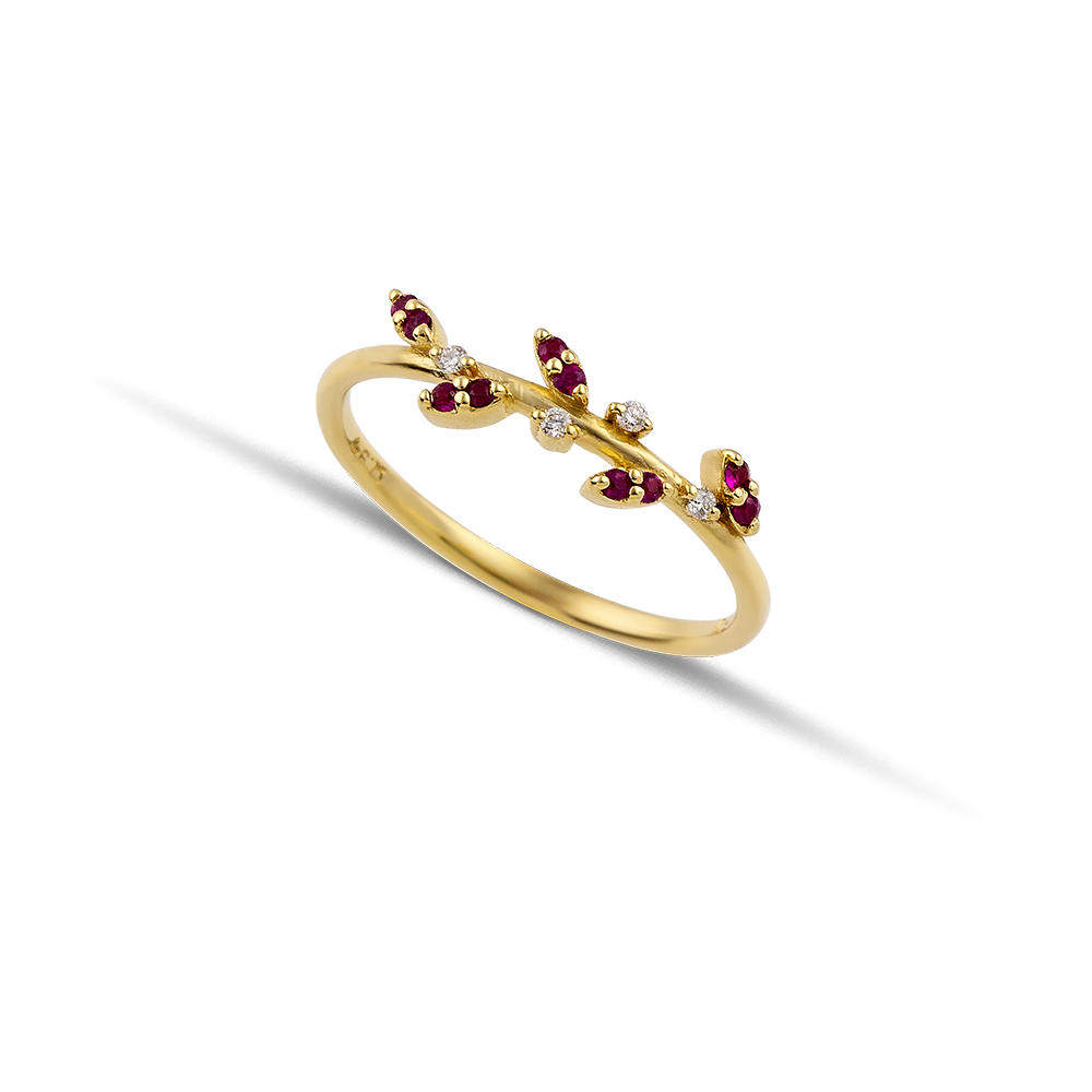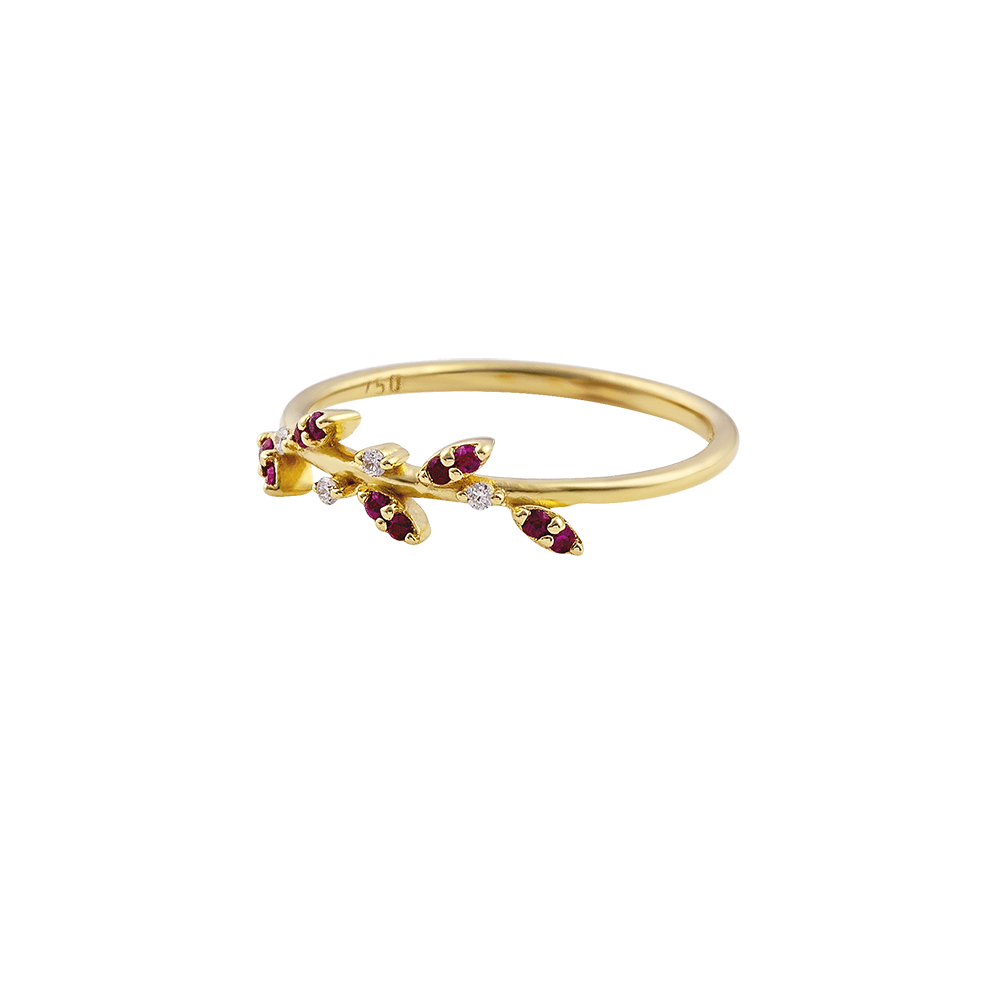 This elegant 18-karat gold ring, with a metal weight of 1.63g, features 0.03cts of round brilliant diamonds alongside 0.09cts of round cut rubies. The subtle sparkle of the diamonds is beautifully complemented by the rich, vibrant hues of the rubies, creating a refined piece perfect for adding a touch of luxury to any look.