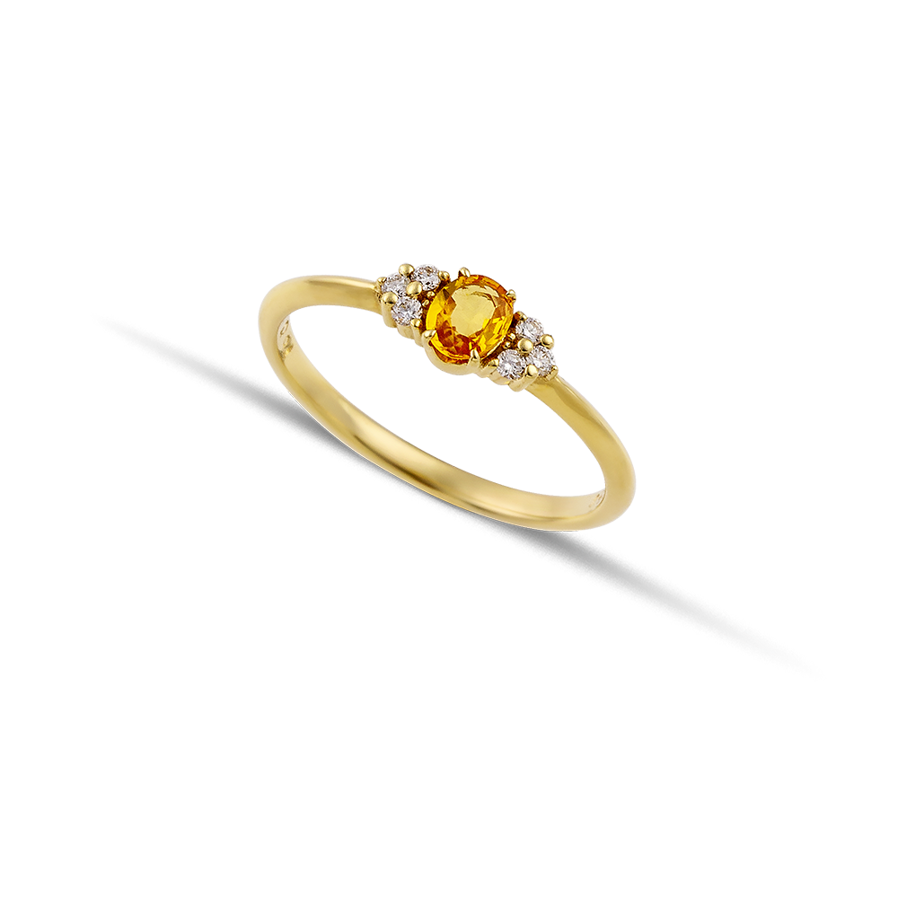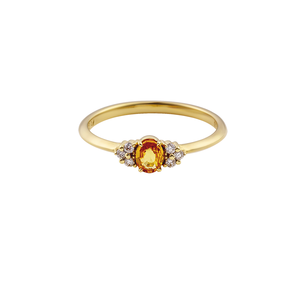 This 18-karat gold ring, weighing 2.61g, features a 0.28ct oval-cut orange sapphire (5x3mm) at its center. It is accented by 0.32cts of square-cut amethysts (3x3mm each stone) and 0.08cts of round-cut orange sapphires. From our Lilly Colours collection, it’s a vibrant blend of elegance and colour.