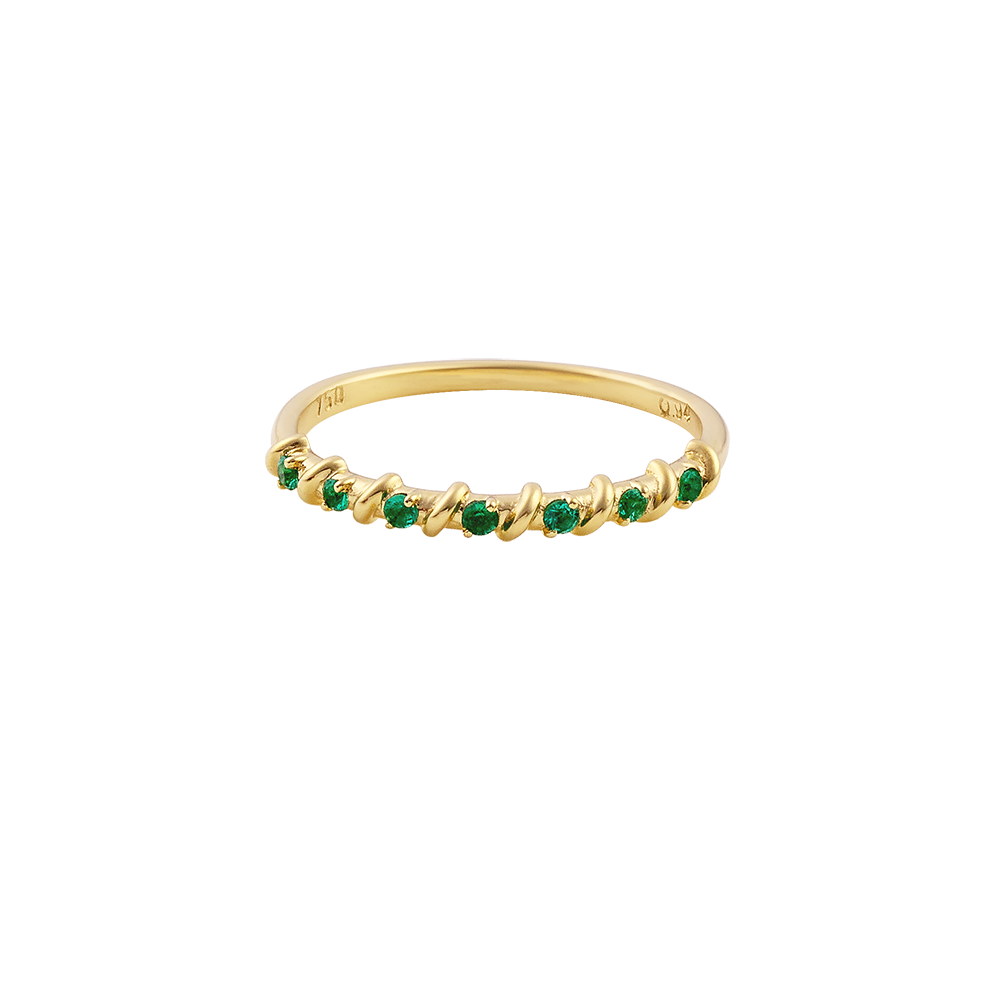 Part of the Lily colours collection, this refined 18-karat gold ring weighs just 2.28g and is set with a 0.36ct pear-cut pink sapphire (5.50x3.50mm) alongside a 0.35ct pear-cut green sapphire (5.50x3.50mm).